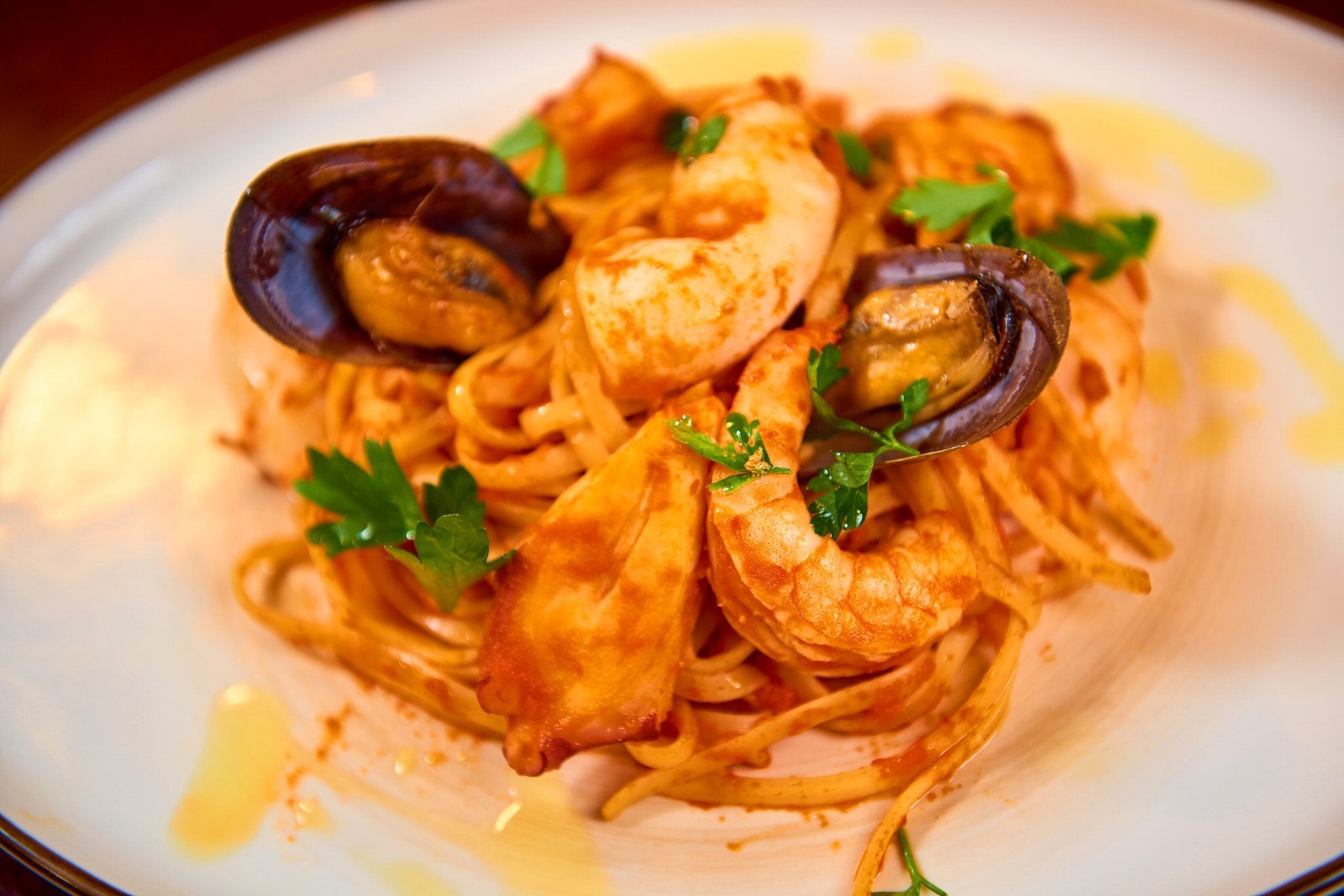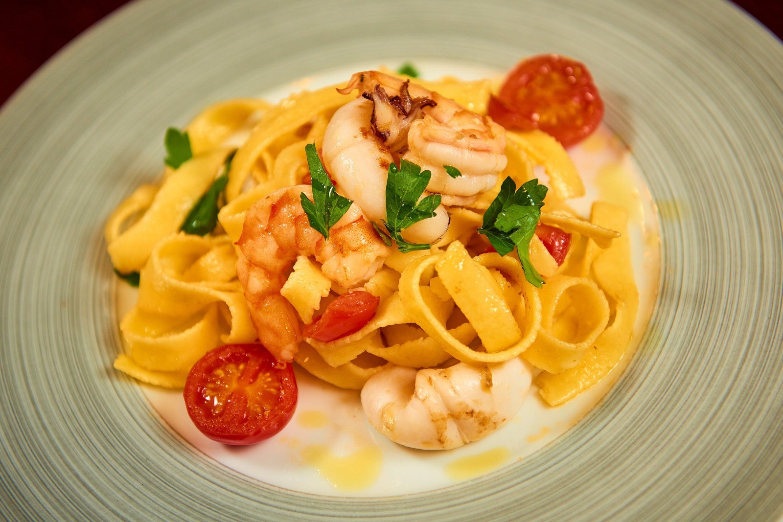 Nu au cum să lipsească vestitele paste tagliatelle (tagliatelle al nero di seppia con branzino, tagliatelle fructe de mare), gnocchi (gnocchi gambero e zucchini), bavette (bavette alla pescatora), farfalle etc.