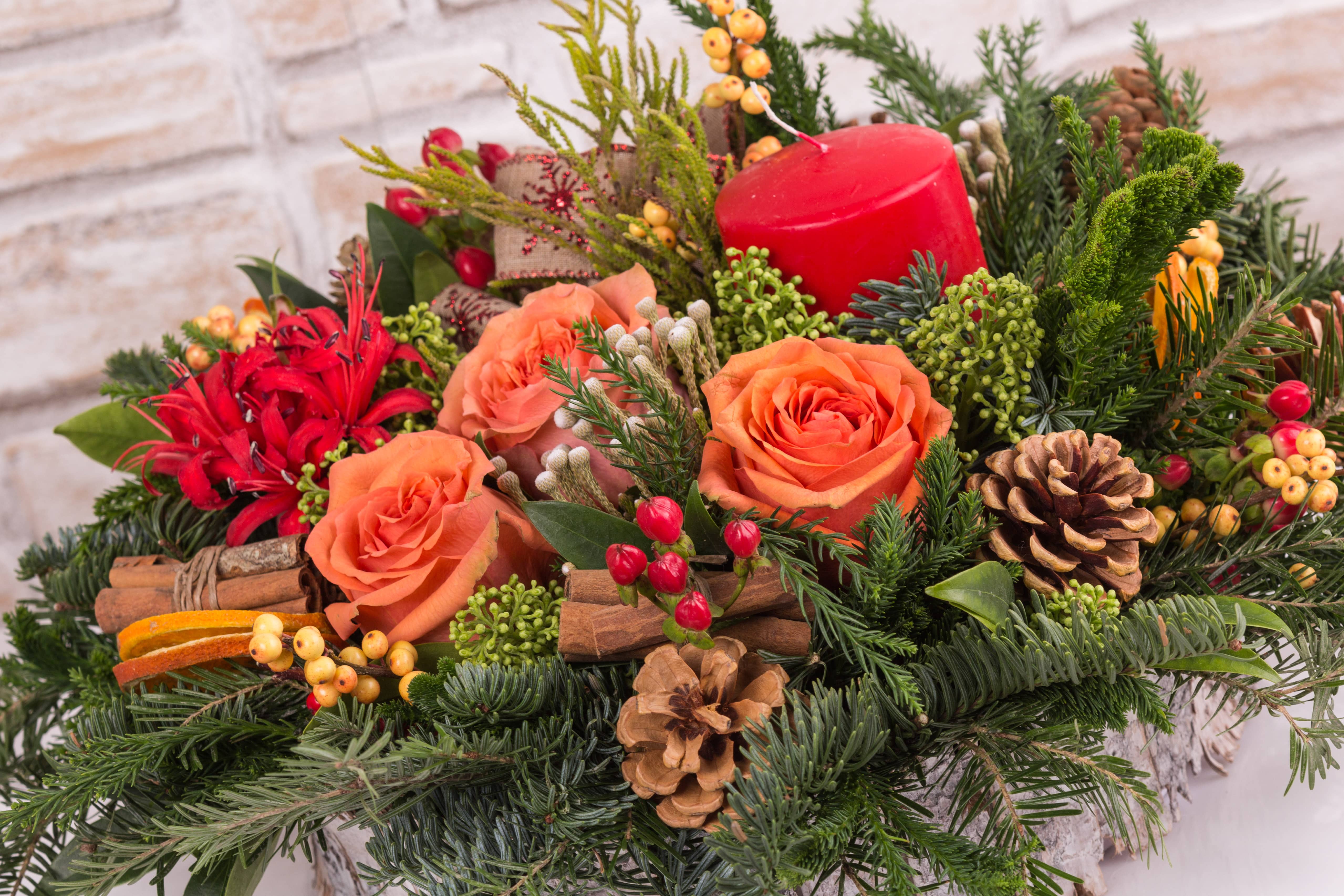 Aranjamente pentru masă și ușă, decorațiuni de brad
