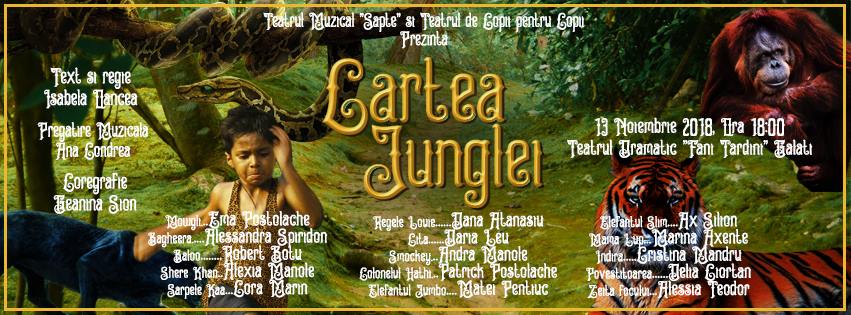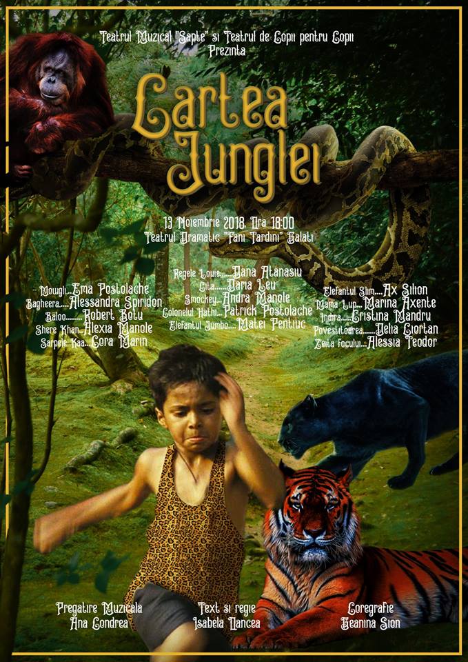 Copiii din Galați și familiile lor au ocazia să vadă Luni – 12 noiembrie și Marți – 13 noiembrie, de la ora 18,00, pe scena Teatrului Dramatic „Fani Tardini”, un spectacol-eveniment după celebra „Cartea Junglei”.
