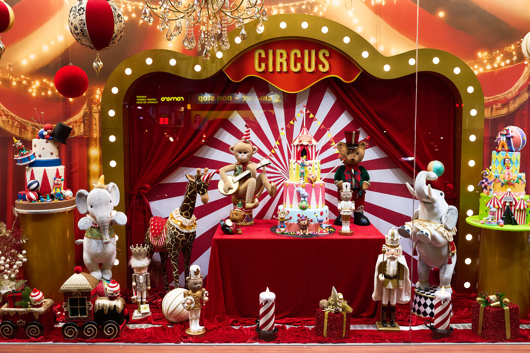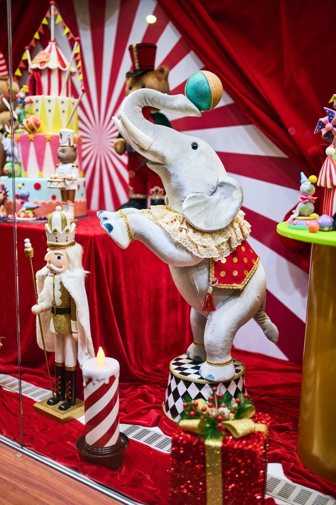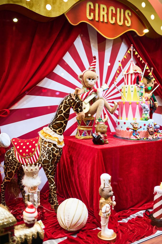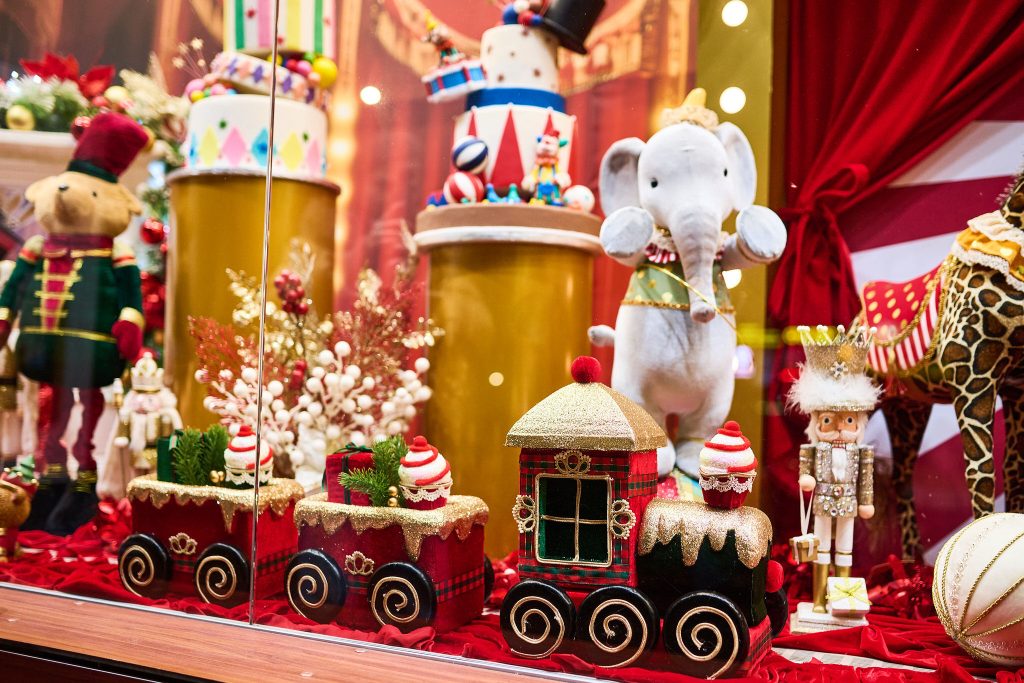 Anul acesta, povestea poartă numele Christmas Circus – o tematică vibrantă, plină de energie festivă și amintiri din copilărie. Decorul vitrinei este un decor compus din personaje și detalii inspirate din arta circului, cu accente luminoase, nuanțe de roșu, alb și auriu și elemente care trimit cu gândul la magia reflectoarelor. Un decor de iarnă care încântă orice privitor sau trecător, aducând un strop de poveste în fiecare zi a sezonului festiv.
