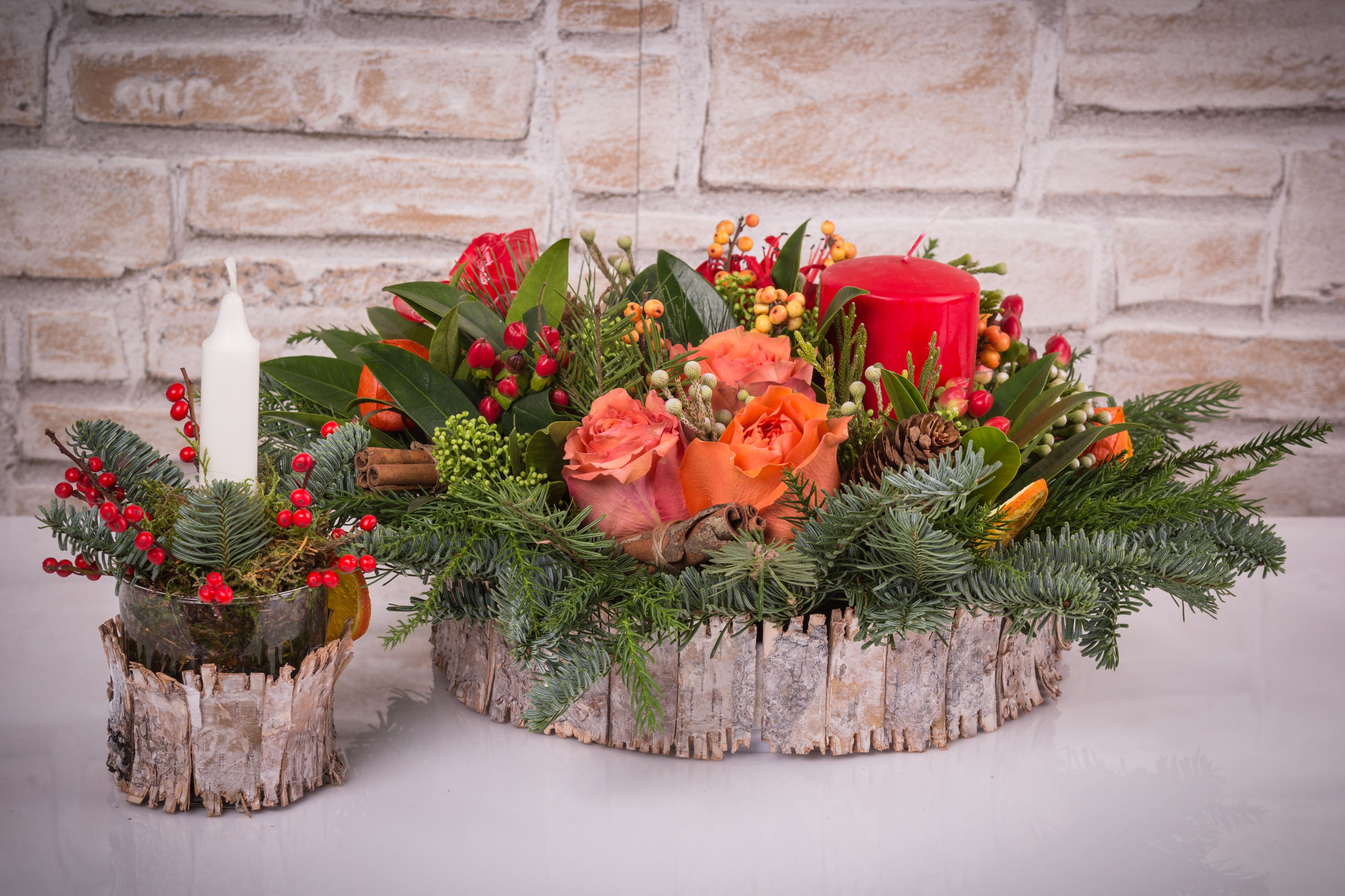Aranjamente pentru masă și ușă, decorațiuni de brad